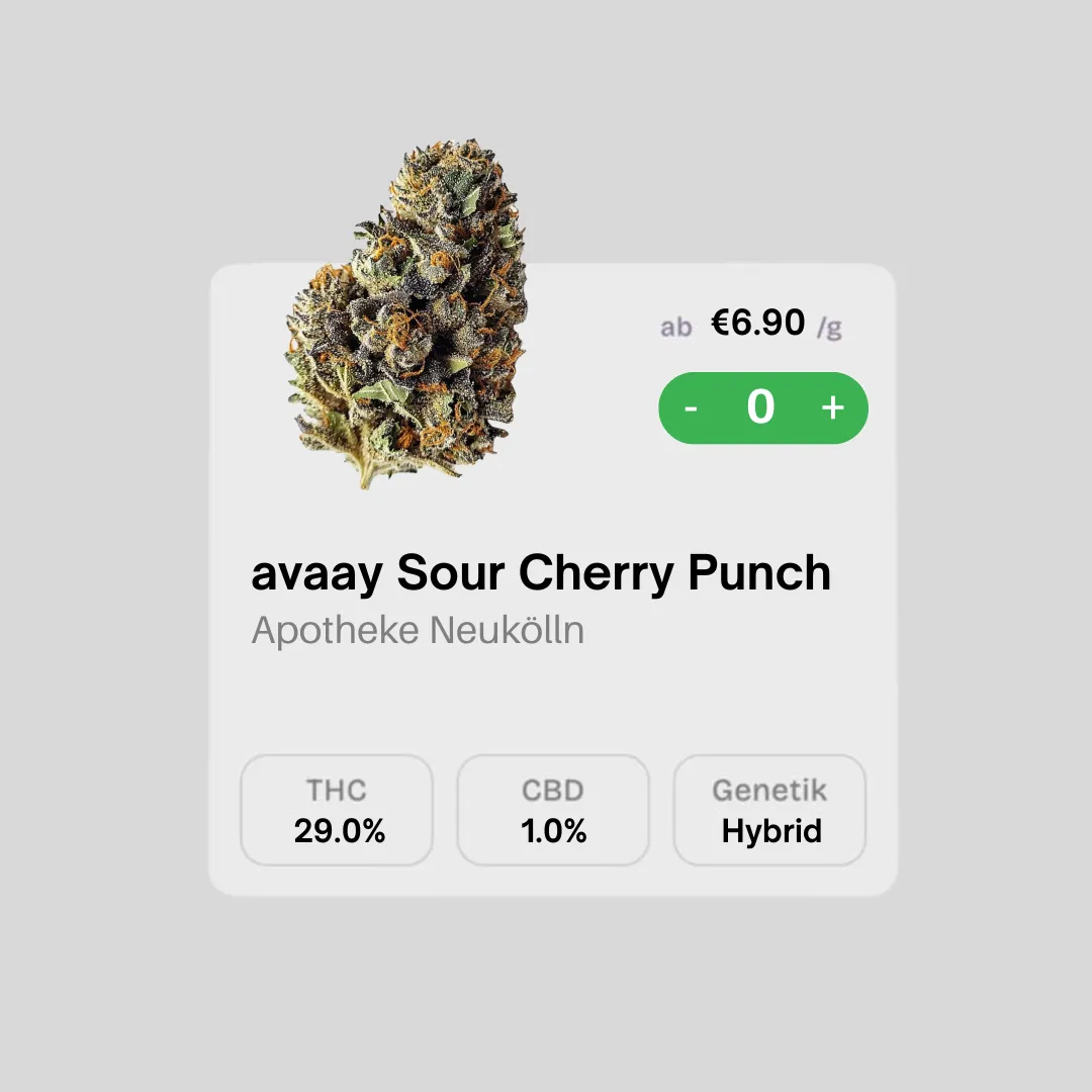 Dein medizinisches Cannabis wird aus einer Apotheke zu dir geliefert - per Cannabis Express Lieferung in 60 Minuten oder per Cannabis Sofort Lieferung in 1-3 Tagen.